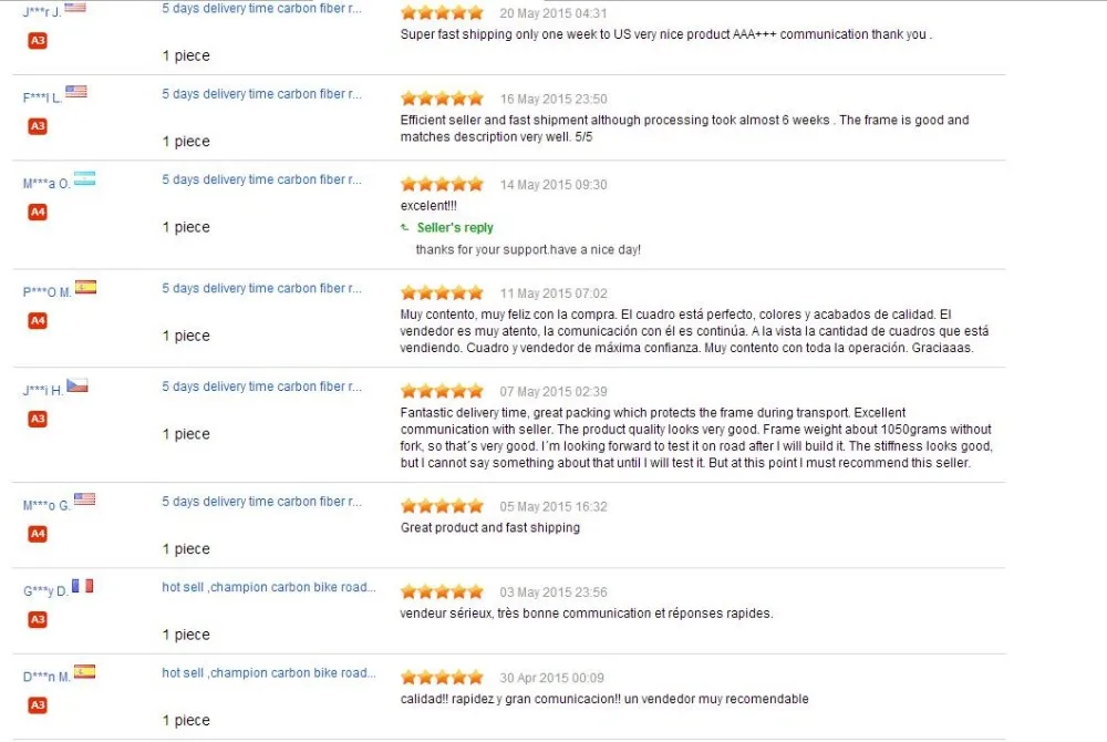 Frame size 700C Road ,Size:50/53/55/57 Material TorayT1100 UDFull carbon fiber Productset Frame+Fork+Headset+Seatpost+Clamp Headset TOP:1-1/8" DOWN:1-1/2 BB BB386 Cable system Internal cable, mechanical and DI2 Compatible Test CEN warranty Two years warranty. When you make the order please leave message 1: Painting Color:Accept customized, 2: The size of the frame 3: Finsih: Matte or Glossy ? (1)if you want to see the more pictures with logo,you can give your email to me , i will send my catalog to you ,you can choose one you like .thanks (2)si quieres ver ms fotos con el logo,usted puede dar su correo electrónico a mí, voy a enviar mi catalogar a usted, usted puede elegirle tiene gusto. gracias (3)se você quiser ver mais fotos com logotipo,você pode me dar seu e-mail, vou enviar o meucatalogar a você, você pode escolher você gosta. obrigado (4)se volete vedere altre foto con il marchio,mi puoi dare la tua email, io mando il miocatalogare per voi, potete scegliere che gradite. grazie European countries friends please note , normally European countries need to pay many customs duties , but we can help you " 0 " duties dear friend , we have special XDB shipping , we ship your frame to UK , UK ship to your country , To avoid the 95% customs problems and 95% of buyers don't have to pay customs duties," 0 "taxes shipping if you want ship by special XDB shipping , please pay 80$ this link: /item/customers-choose-the-other-shipping-and-pay-the-extra-fee-this-is-dpd-extra-fee-link/32828097875.html